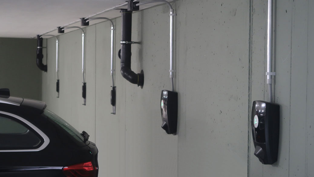 Zwischenstand der Umfrage: 78,6% sind für gesetzliche Vorschriften. Und das Foto zur Umfrage zeigt, dass solche Vorschriften auch kosteneffizient umsetzbar wären. Flachkabel mit einer Vorsicherung und ein kurzes Anschlusskabel auf die Rückplatte: mehr braucht es mit der ZapCharger Pro Lösung „Made in Norway“ nicht, um Parkplätze EVready zu machen und anschliessend nach Bedarf intelligente Ladepunkte zur Verfügung zu stellen.
